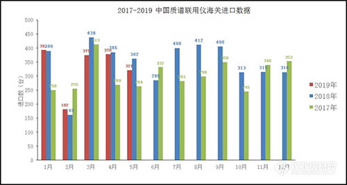 2017-2019(1-5月)質譜聯用儀海關逐月進口數據