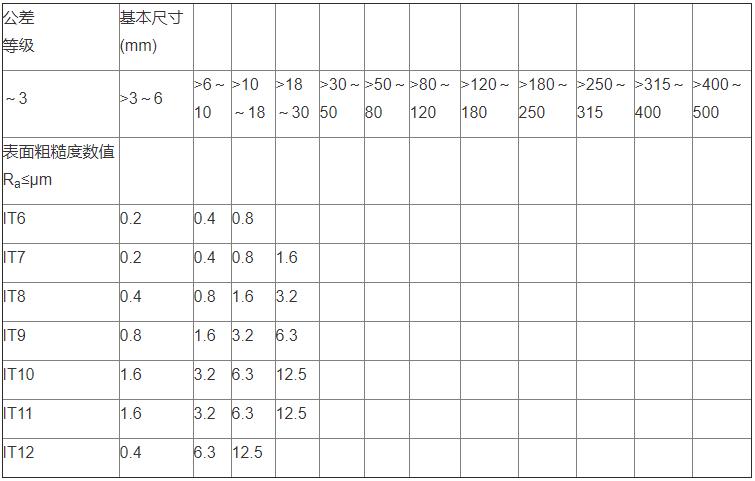 表3 公差等級與表面粗糙度值(用于通用機械)