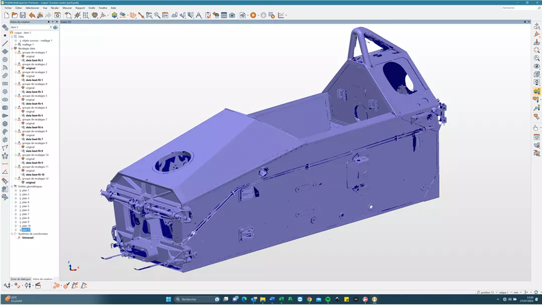“如果表面上出現孔洞,借助多邊形掃描功能,您只需重新掃描孔洞即可。同時,借助PolyWorks中的選擇工具,我們可以刪除支撐、“清理”像素等。我們以前使用的軟件解決方案的服務提供商總是向我們收取“清理”部件的費用,然后再收取“清理”掃描的費用。Laurent先生說“過去需要半天甚至一整天來完成掃描的零件,現在只需半小時或最多一小時就能完成掃描”,他特別強調說,即使是鋁制底盤,或者亮黑色、鍍鉻的零件也能輕松完成掃描。