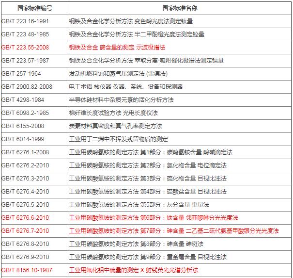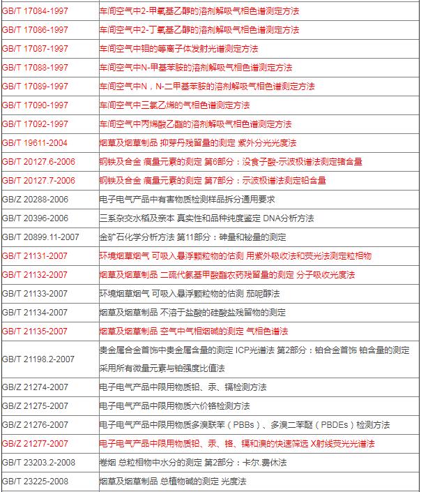 統(tǒng)計發(fā)現(xiàn),本批廢止的標準中約有200項儀器方法,主要為色譜、光譜、氣質(zhì)聯(lián)用分析方法,且以汽車行業(yè)車間空氣檢測為主。匯總?cè)缦拢?/span>
